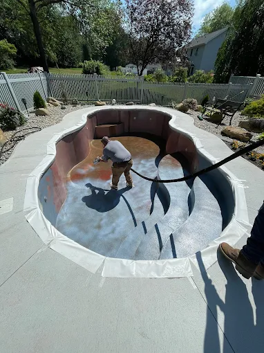 This is for customers that already have a fiberglass or concrete pool. Price is per Day (not by job or sq.ft) with most concrete jobs needing 4-5 days to properly clean, etch old concrete, repair minor cracks with Resin and Fiberglass, and then apply ecoFINISH. ecoFINISH resurfaced pools can be filled with water as soon as the polymer cools down and epoxy has cured (within 24 hours usually of application) with no need for expensive plaster chemical startup.