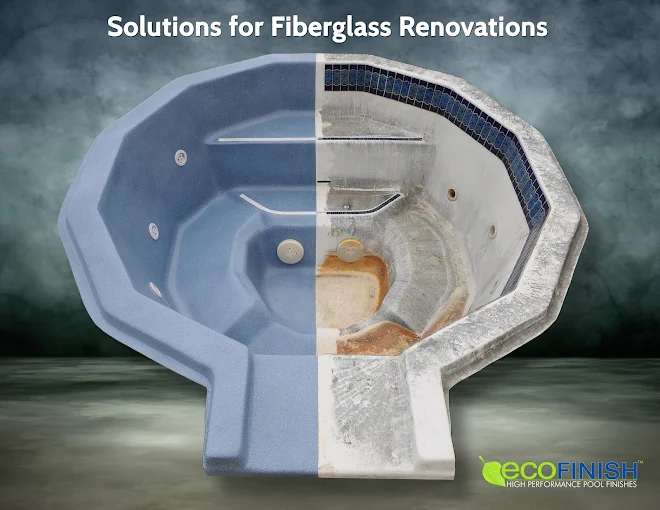 - More resistant to Liquid Chlorine & Muriatic acid then Gelcoat. Most of the gelcoat issues we see is pool service companies treating fiberglass pools with cheap chemicals. Liquid chlorine & muriatic acid will get into the gelcoat pores and if you have high PH, cause blisters. Epoxy and Polymer surfaces like EcoFinish fill and cover these microscopic pores in the gelcoat making it even easier to maintain your pool if your pool service company uses liquid toxic chemicals or allow the calcium to build up above 225.